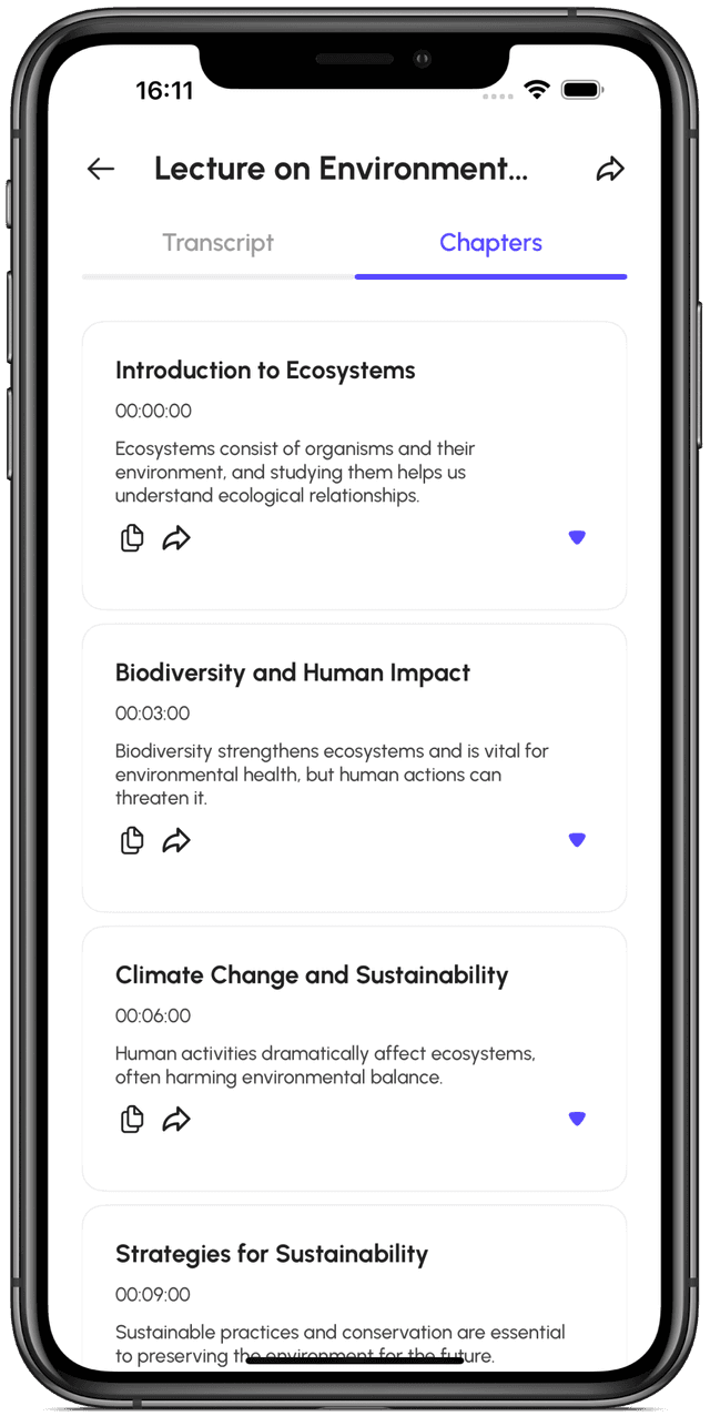 Don’t waste time organizing your notes. LecToNote’s AI divides your lectures into meaningful chapters, making studying and revision faster and easier than ever.